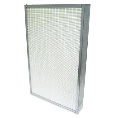 The optional HEPA filter is a micro-glass paper mini-pleat filter which is inserted in a special housing (sold separately) mounted on the back of the Santa Fe Rx cabinet. The efficiency rating of this filter is 99.97% on the D.O.P. Test. 20" X 32" X 4" HEPA filter for Santa Fe RX - 99.976 Efficient at .03 microns (requires secondary housing)The optional 95% efficiency and HEPA filters have long lives when prefitered by the standard pleated inlet filter; they can last many years in certain conditions. How long they last can, however, vary widely depending upon the following: Unit run time, air contamination level, and standard inlet filter cleanliness. Due to the optional filters' expense, it can be costly to change them prematurely. The following test helps determine when they should be changed.Air exiting the bottom rear of the unit enters the filter frame, then passes through the optional filter and into the room. If the filter is dirty, air pressure builds up before the filter. To check this pressure, remove the plastic plug from the filter frame top; you will feel air coming out of the hole with the unit running. Place the ping pong ball that came with the filter frame on the hole and let go (any marked, regulation sized ping pong ball will work). If the ball does not move or only bounces slightly and does not spin continuously, the filter is clean enough for continued use. If the ball floats above the hole and starts to spin and perhaps wobble within 30 seconds, the filter needs to be changed.